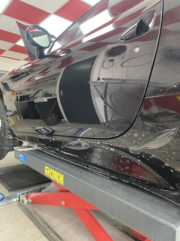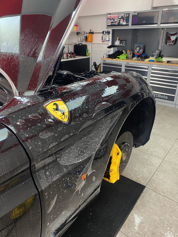 Cette Ferrari California T pourra donc reprendre tranquillement la route sans se soucier du moindre gravier ou des futurs micros rayures car le film transparent de protection, PPF est également auto cicatrisant.