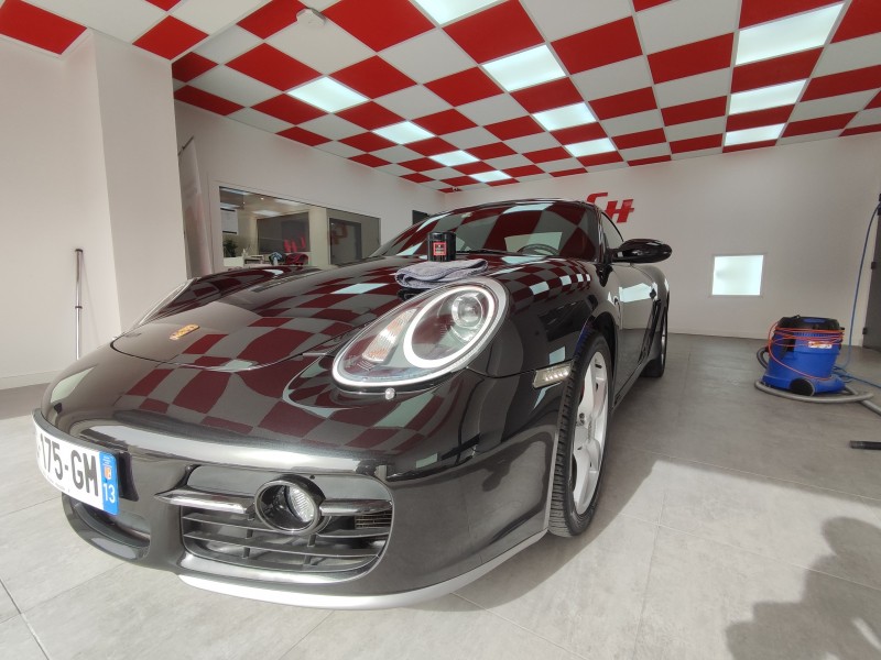 Lustrage complet et application d’une cire carnauba sur cette Porsche cayman S.