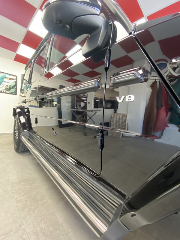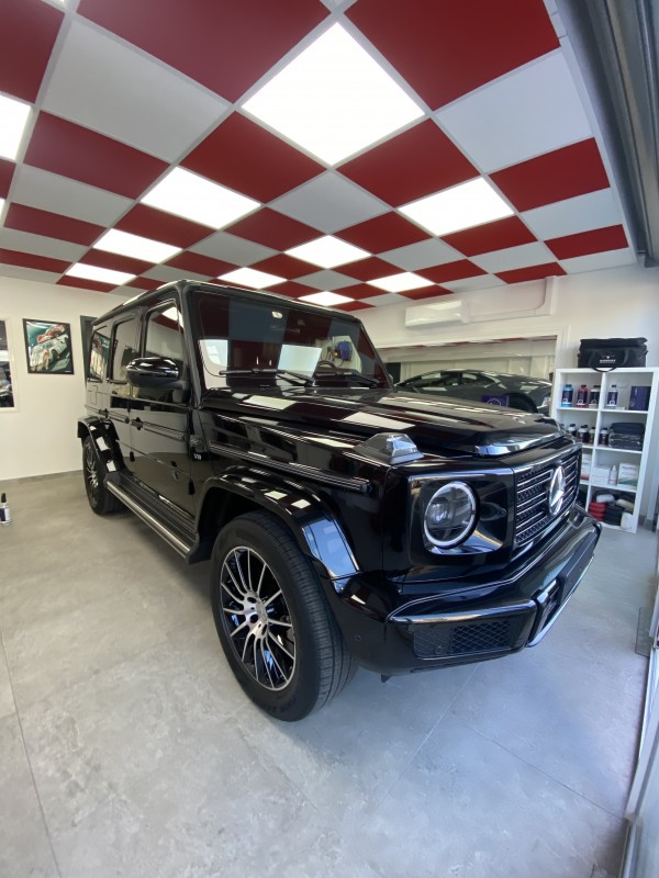 Le lustrage permet de raviver le voile terne laissé par le polissage et d’augmenter la brillance du vernis afin de donner un aspect neuf au véhicule et en l’occurrence à ce Mercedes classe G sur les routes de Marseille.