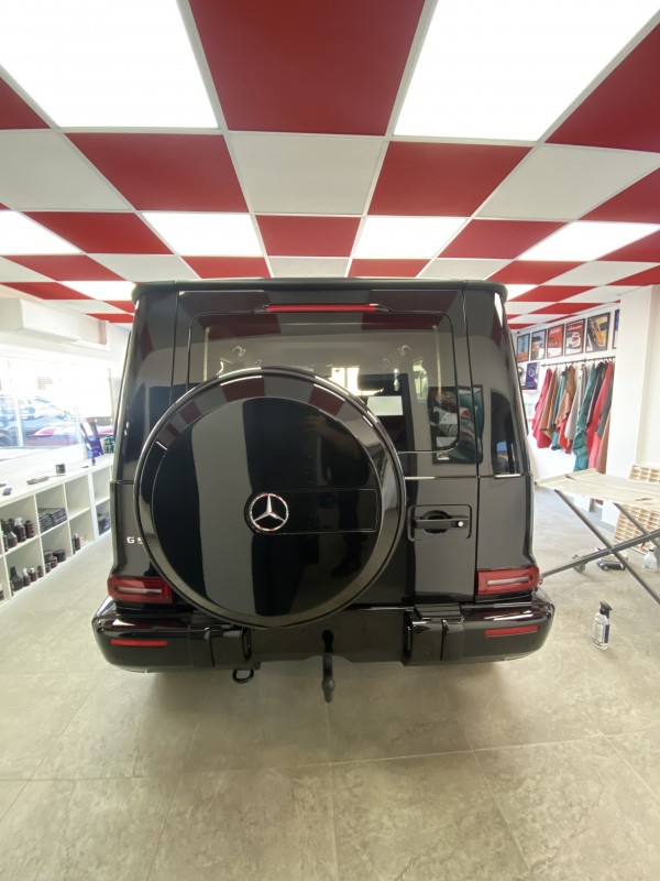 Une céramique vient compléter cette action de polissage et de lustrage, afin d’apporter une brillance supplémentaire, une hydrophobie, une légère protection contre les futures rayures sur ce Mercedes classe G. Ses futurs nettoyages seront facilité grace à la pose de cette céramique.
