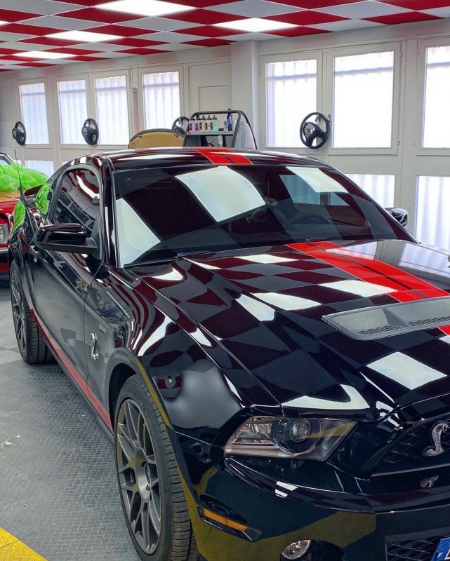 La ceramique est donc la dernière des étapes après un polissage et un lustrage de cette mustang shelby GT 500.