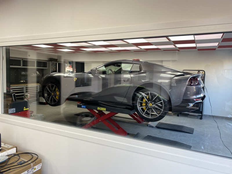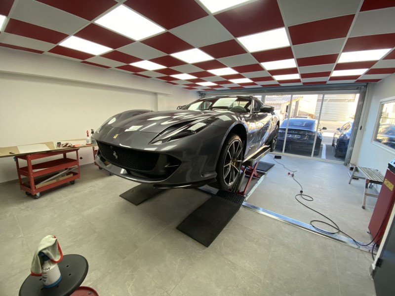 Pose d’un film de protection de carrosserie PPF SUNTEK prédécoupé dans nos ateliers sur cette magnifique Ferrari 812 GTS. Le film de protection autocollant transparent posé sur la face avant de cette Ferrari permet de la protéger au mieux des gravillons, rayures , fientes d’oiseaux, sève d’arbres…..