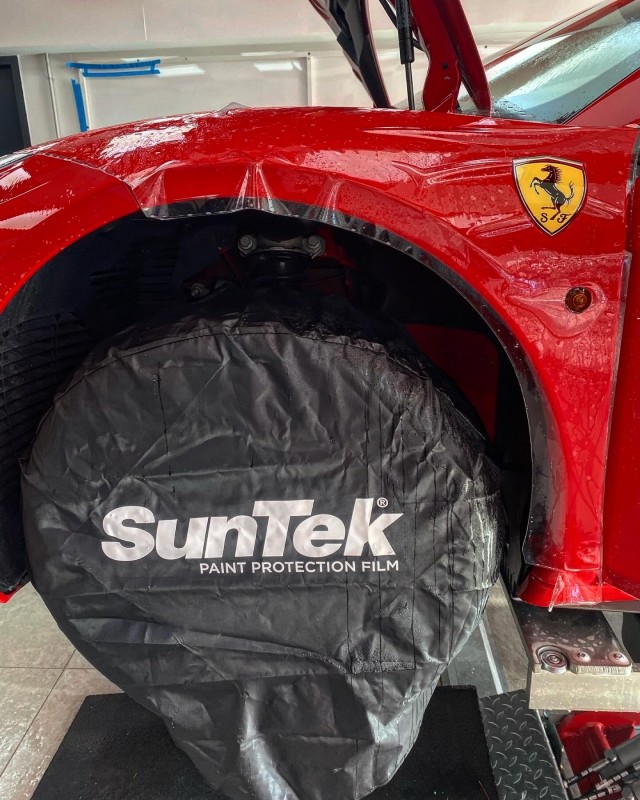 En choisissant le film SUNTEK prédécoupé au sein de nos atelier, le propriétaire de cette Ferrari a fait le choix d’une protection carrosserie durable et totalement invisible.