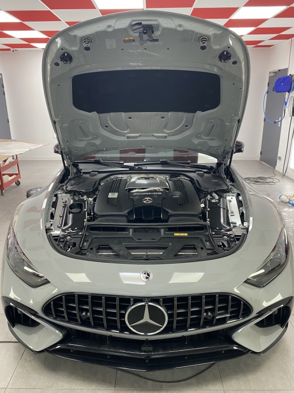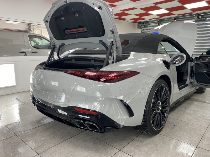 Pose d’un film de protection PPF sur la totalité de la carrosserie de cette Mercedes AMG.